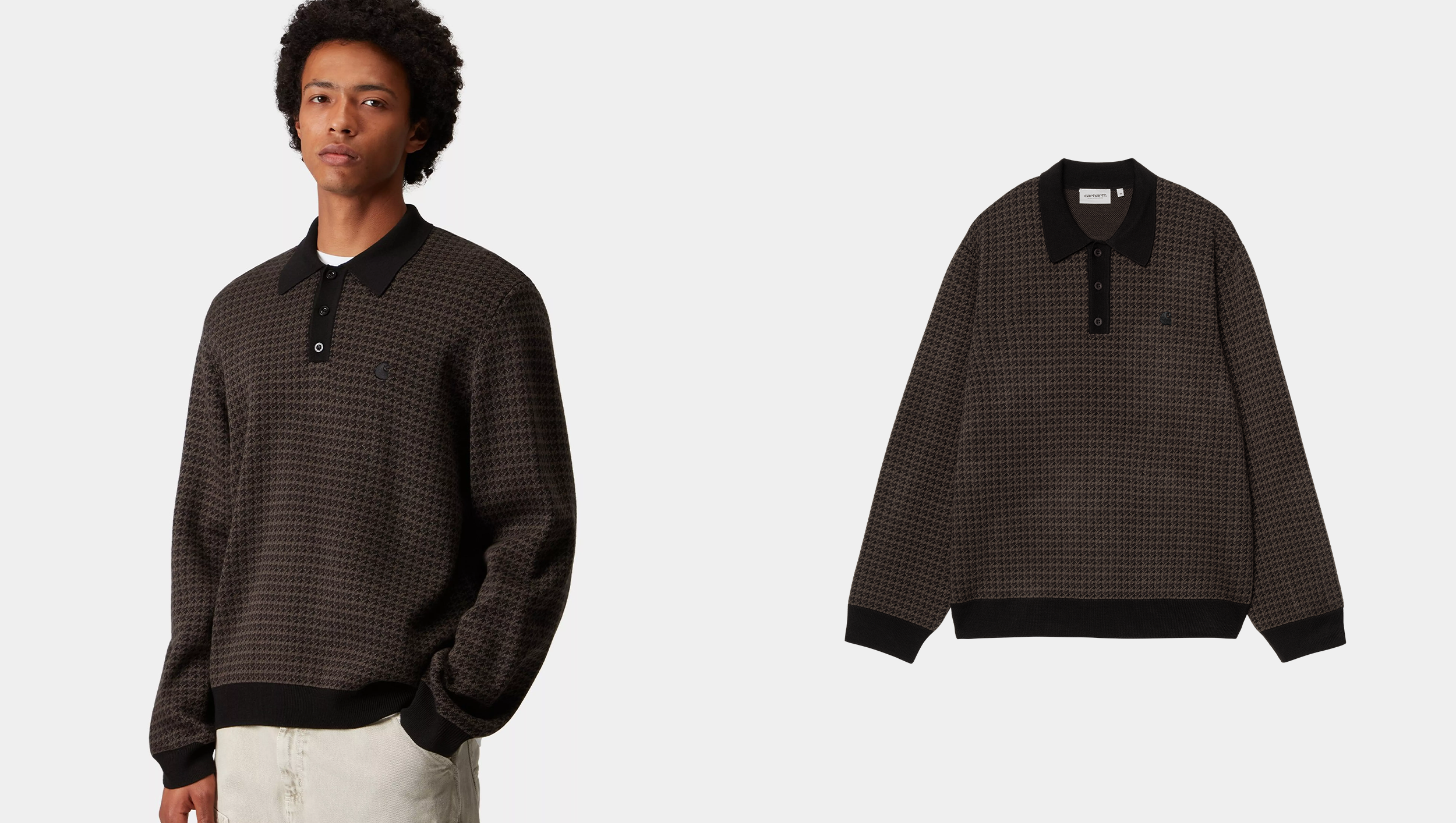 L/S LOWIS POLO - Lowis Houndstooth, Grey Heather