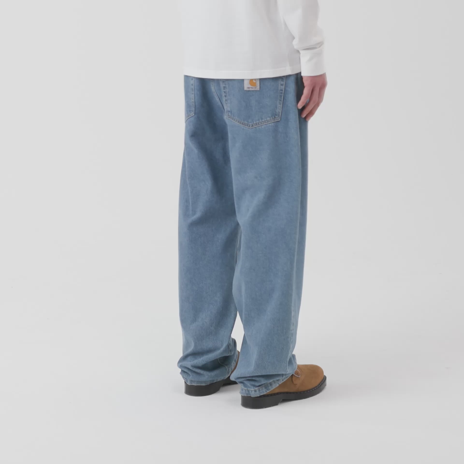 ランドンパンツは、Carhartt WIPの5ポケットデニムパンツの中でもベストセラーを誇るデニムパンツです。12オンスのロバートソンデニムを使用したヘビーウェイト生地をストーンウォッシュ加工により柔らかく仕上げています。股上はレギュラーで、ルーズテーパードフィットのシルエットが特徴。太もも周りにはゆとりがあり、膝下に向かって細くなるデザインで、綺麗でクセのないシルエットに仕上がっており、どんなスタイルにも合わせやすい汎用性の高い一本です。フロントはジップフライ仕様で、ヒップポケットにはCarhartt WIPの「C」ロゴが入ったスクエアラベルがあしらわれています。今のトレンドにもマッチする、快適でスタイリッシュなデニムパンツです。