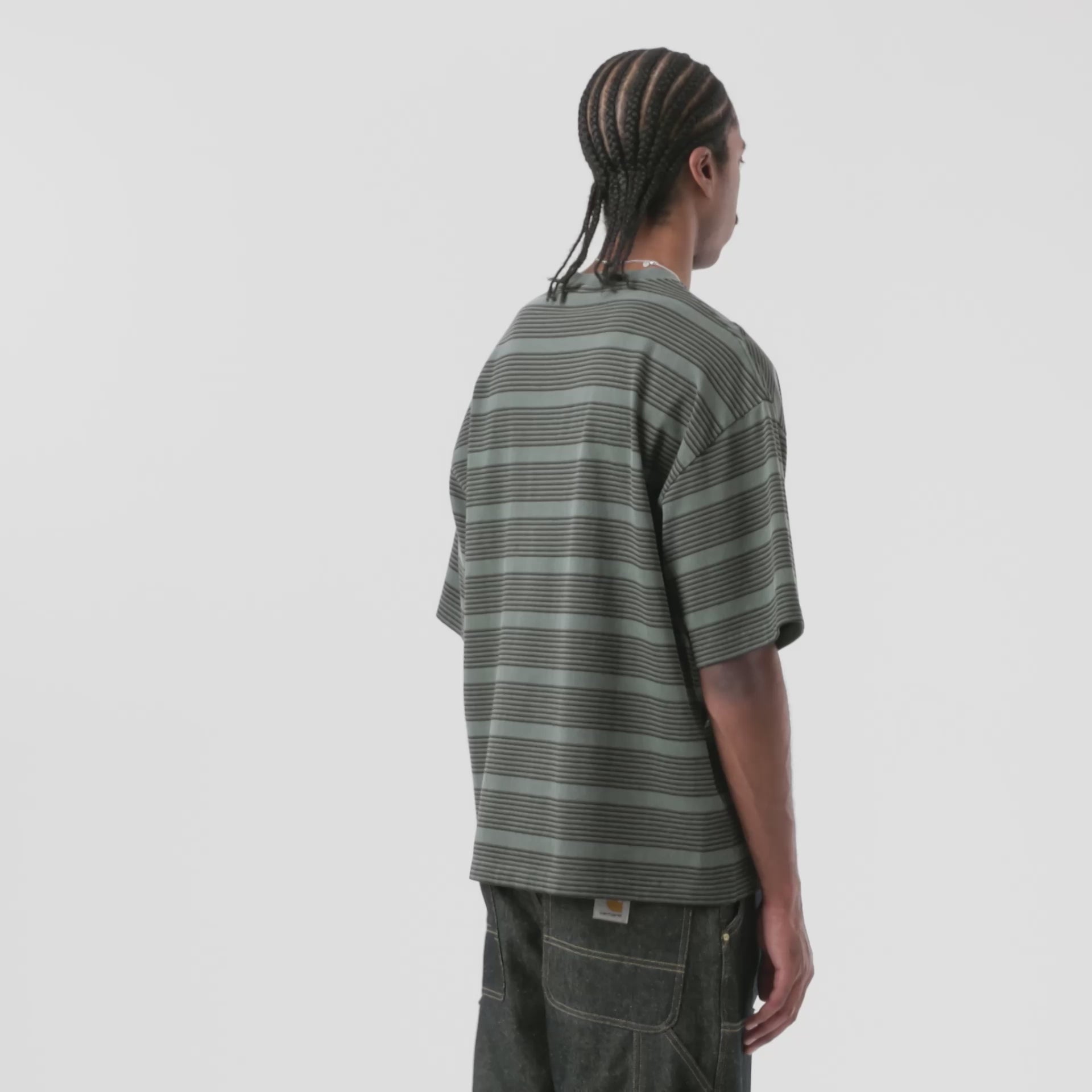 S/S Hanson T-Shirt - Hanson Stripe, Kale Green (garment dyed)